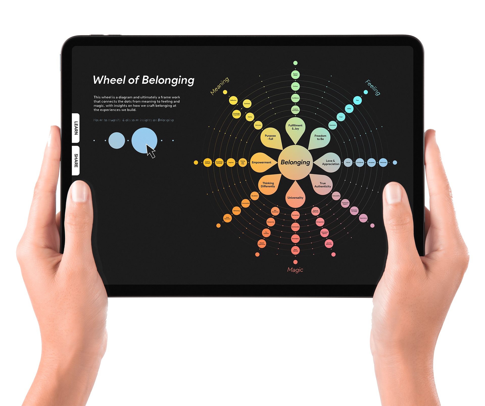 Designing for belonging means transforming complex ideas into accessible, human-centered experiences. For the Wheel of Belonging, I translated extensive research to create a compelling visual system—one that invites exploration, reflection, and connection.